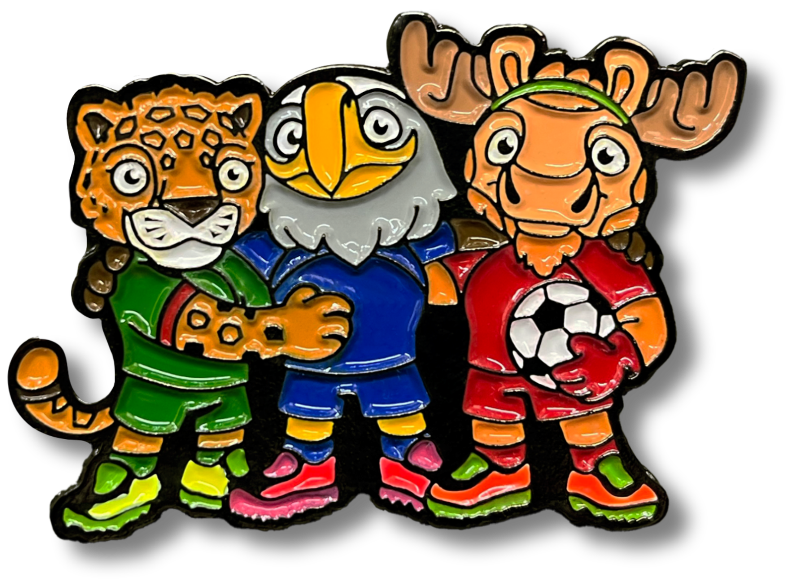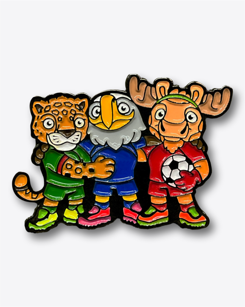 Pines metálicos inspirados en las mascotas del Mundial 2026 para acompañarte en cada gol.